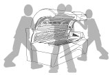 マシンを設置するに当たって、搬入する経路を確保する必要があります。 マシンは通常完成状態で運送され、搬入時に分解、搬入後に設置場所で組み立てます。 マシンは基本的にルーフ部、ベッド部、バックパネル部などに分けることができますが、通常ルーフ部が一番大きく、搬入にはルーフ部を設置場所まで運び入れることができるかが問題となります。 階上の場合は、エレベータ、あるいは、階段で上げることができるか、また、搬入口の広さ、設置場所までの通路の幅と天井の高さが問題となります。 特に組立ての最後にルーフ部をベッド部が完成した部屋へ持ち込みますので、部屋の広さと形、開口部の広さと位置が問題となります。 ・小型モデル以外は通常のエレベータによる搬入はできません。 ・階上に上げる時にはクレーンを使用する方法も考えられます。 ・エルゴラインの大型のモデルは搬入できない場合もあります。 |